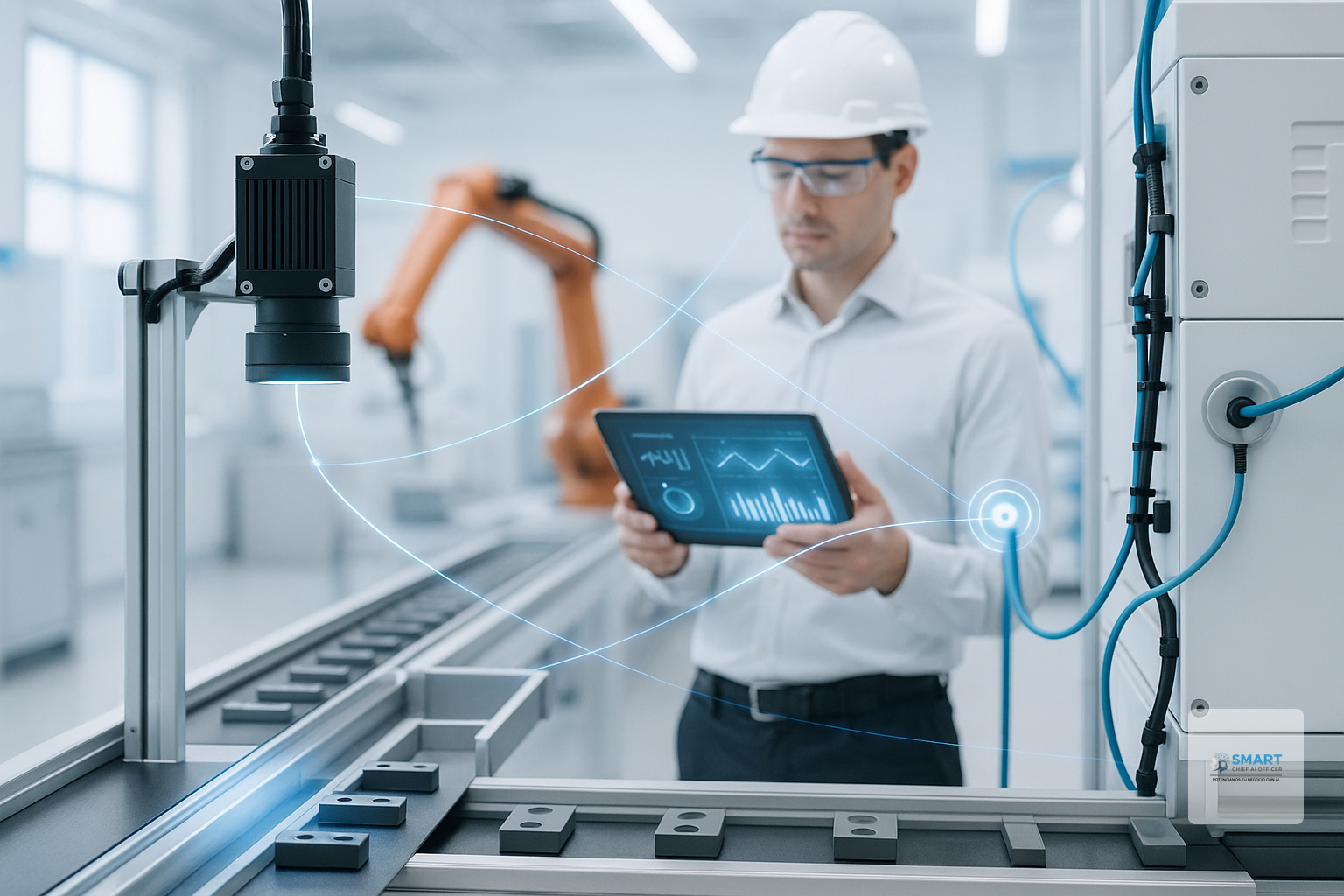 Respuesta rápida: La IA en manufactura es el uso de modelos y automatización para detectar patrones en datos de planta y ejecutar decisiones operativas. Control de calidad con visión por computadora para detectar defectos Mantenimiento predictivo con IA para anticipar fallas con sensores/IoT Optimización de productividad (OEE, planificación, balanceo) con analítica El resultado es menos scrap, menos paros y mejor throughput, según datos y madurez de procesos. TL;DR La IA en manufactura genera ROI cuando se conecta a un proceso dueño, datos confiables y una acción operativa clara (no “dashboards bonitos”). El control de calidad con IA (visión) reduce variabilidad y detecta defectos consistentes, según iluminación, set-up y etiquetado. El mantenimiento predictivo con IA prioriza activos críticos y reduce paros no programados cuando hay sensores, historial y disciplina de intervención. La productividad mejora al optimizar planificación, OEE y balanceo de línea con datos de MES/SCADA/ERP y reglas de decisión. Los agentes de IA para operaciones (SOPs, reportes, soporte 24/7) escalan conocimiento y reducen tiempo administrativo con RAG e integraciones. La promesa de la IA en manufactura no es “reemplazar gente”, sino convertir datos dispersos (calidad, mantenimiento, producción) en decisiones repetibles. Si hoy tu planta vive entre Excel, paros “misteriosos” y retrabajos, hay oportunidades claras. En este artículo vas a ver 5 aplicaciones prácticas de IA en manufactura (calidad, mantenimiento y productividad), qué datos requieren, cómo medir ROI sin humo y un checklist de implementación. ¿Qué es la IA en manufactura y dónde suele generar ROI primero? La IA en manufactura aplica modelos (ML, visión, series temporales y agentes) para detectar, predecir y recomendar acciones en procesos de planta: inspección, mantenimiento, planificación y soporte operativo. Ejemplo/Prueba: Gartner proyecta que hacia fines de 2026 una parte relevante de aplicaciones empresariales incorporará IA agentic (agentes) , y operaciones de manufactura aparece como caso de uso clave (ver forecast de adopción de AI agents de Gartner). Eso empuja ROI en tareas repetitivas: reportes, SOPs, triage y coordinación. Checklist de pasos (para elegir “primer ROI”): Define un objetivo operativo: scrap , paros , throughput , OEE , tiempo de inspección . Elige un proceso con dueño: Calidad, Mantenimiento o Producción (no “TI”). Identifica el dato fuente: cámara, PLC/SCADA, CMMS, MES, ERP, checklists. Asegura acción: “si pasa X → hago Y” (intervención, bloqueo, re-trabajo). Diseña un baseline: 4–8 semanas de medición previa (según disponibilidad). Planifica despliegue: piloto en 1 línea/celda, luego escalado. En resumen: La IA paga primero donde hay dolor medible, datos accesibles y una decisión operativa clara (bloquear, intervenir, replanificar). [Agenda diagnóstico gratis →] ¿Cómo funciona el control de calidad con IA (visión por computadora) sin frenar la línea? El control de calidad con IA usa cámaras + modelos de visión para detectar defectos, anomalías o desviaciones dimensionales y disparar acciones (rechazo, retrabajo, ajuste de set-up) en tiempo real o casi real, según arquitectura y latencia requerida. Ejemplo/Prueba: En casos públicos de la industria (p. ej., BMW con visión + ML), se reportan mejoras fuertes en scrap/rework; los porcentajes varían y dependen de iluminación, variabilidad de producto y gobernanza de etiquetas, por lo que conviene validar con piloto controlado (ver recopilación de casos en Appinventiv). Pasos para implementarlo (mínimo viable): Define el defecto: “rayón”, “porosidad”, “faltante”, “mal ensamblado”, “etiqueta”. Estabiliza captura: iluminación, distancia, lente, trigger, fondo. Crea dataset: 200–1.000 imágenes por clase como punto de partida (variable). Etiqueta con criterio: guía de etiquetado y auditoría semanal. Integra acción: señal a PLC, estación de rechazo o ticket a calidad. Mide: precisión/recall por defecto + impacto en scrap y tiempo de inspección. En resumen: Visión por computadora funciona cuando el defecto está bien definido, la captura es estable y la IA está conectada a una acción (no solo a un reporte). ¿Qué dos aplicaciones “rápidas” de visión suelen dar resultados en calidad? Dos aplicaciones de IA en manufactura suelen ser “quick wins” en calidad, porque acotan alcance y aceleran aprendizaje: detección de defectos superficiales y verificación de ensamblaje/presencia . Ejemplo/Prueba: En eventos de automatización y digital engineering (p. ej., SIMTOS y su foco en AI control systems y smart factories) se ve fuerte adopción de inspección visual automatizada y digital twins como pilares de modernización. Es consistente con la demanda 2026 de inspección autónoma y AIoT. Checklist (elige una de estas dos y piloto): Defectos superficiales: rayas, manchas, rebabas, pintura, soldadura. Presencia/ausencia: tornillos, etiquetas, conectores, componentes críticos. “Golden sample” digital: compara contra patrón aprobado. Umbrales: define tolerancias y política de “revisión humana”. Trazabilidad: guarda imagen + timestamp + lote/orden. Plan de drift: re-entrenamiento mensual/trimestral según cambios. En resumen: Para arrancar, apunta a defectos visibles o verificación de presencia; son casos acotados, trazables y fáciles de conectar a rechazo/retrabajo. [Agenda diagnóstico gratis →] ¿Qué es el mantenimiento predictivo con IA y qué datos necesita de verdad? El mantenimiento predictivo con IA estima probabilidad de falla o degradación de activos usando señales (vibración, temperatura, corriente, acústica, presión) y datos de contexto (carga, turnos, órdenes de trabajo) para priorizar intervenciones antes del paro. Ejemplo/Prueba: Casos públicos en la industria (p. ej., General Motors) describen detección temprana de fallas a